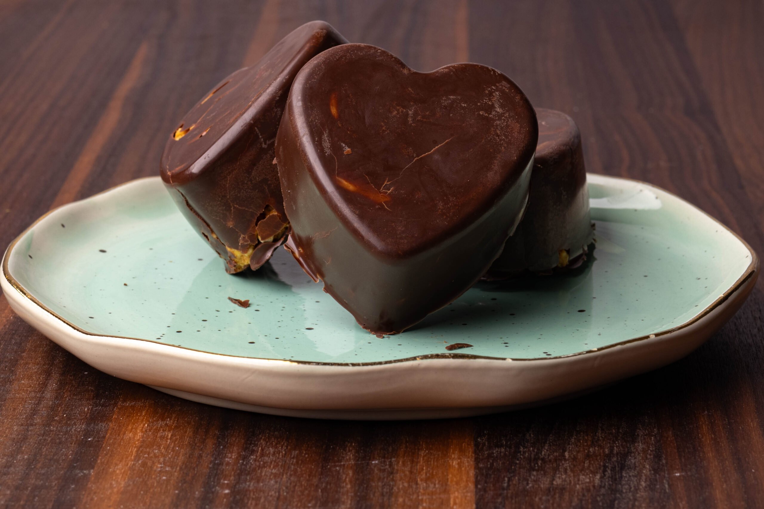 - Thinly coat the heart shaped molds – bottoms and sides. Toss in the freezer for 10 mins until solid.